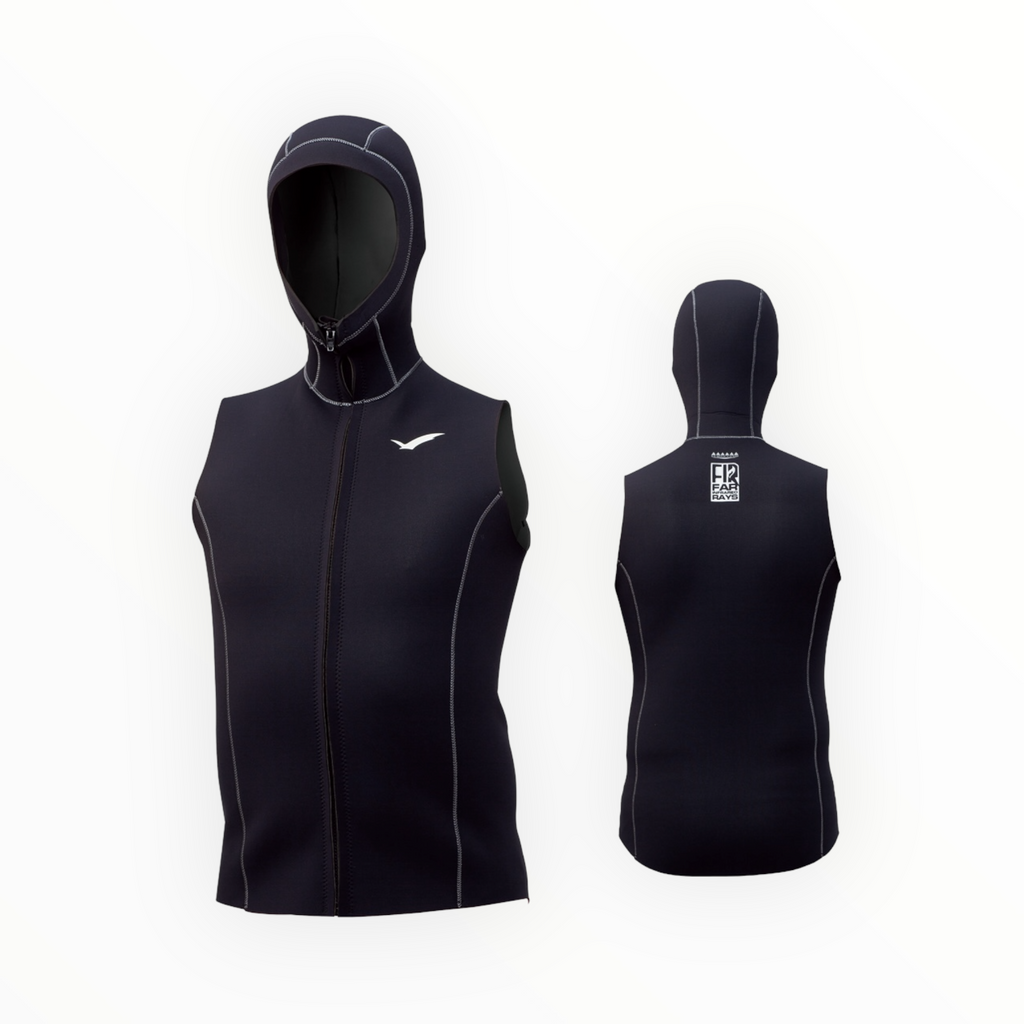 Für den Wintereinsatz entwickelt, bietet diese FIR (Ferninfrarotstrahlung) stoffgefütterte Kapuzenweste Wärme für Kopf und Oberkörper bei Aktivitäten in kaltem Wasser. Sie bietet ausgezeichnete Isolierung und ist ideal für das Tauchen in der Wintersaison.