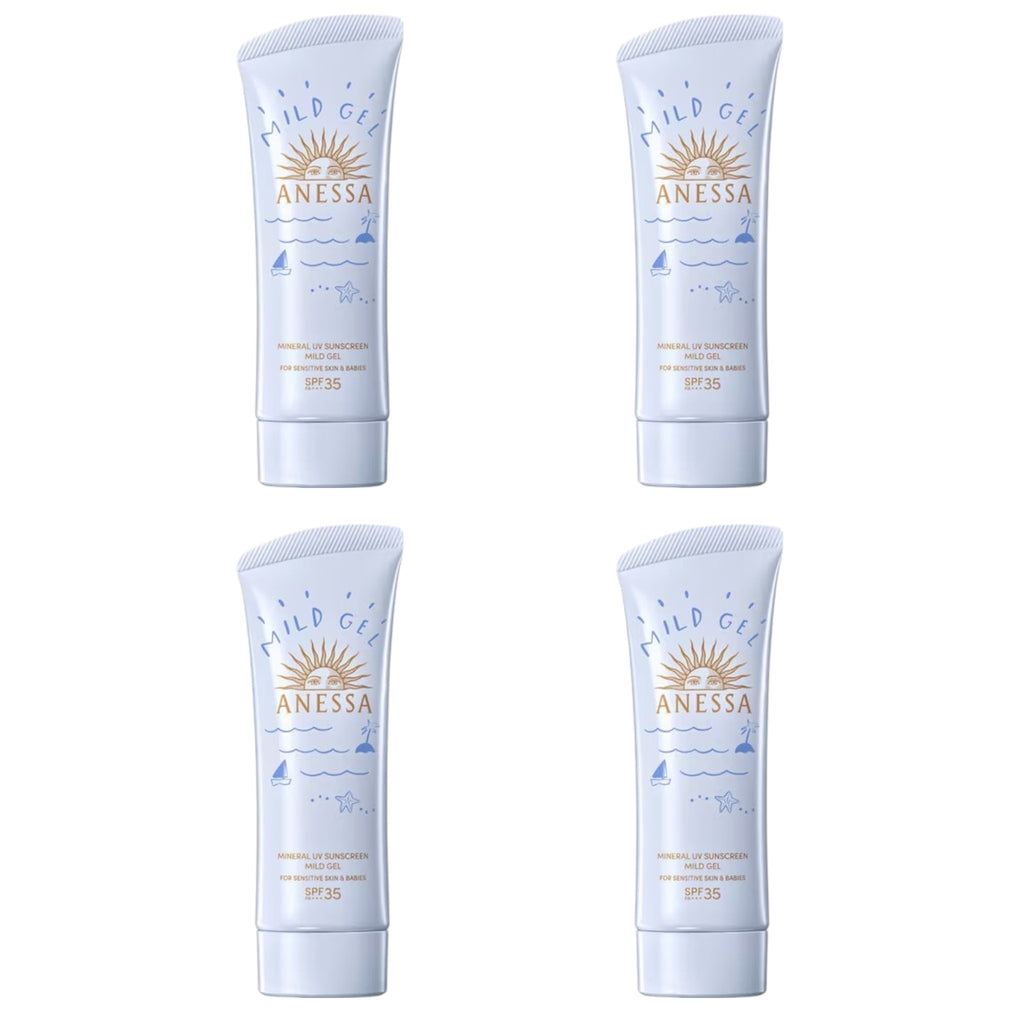 DescriptionFour bottles of non-chemical sunscreen gel with a mild, hydrating formula.