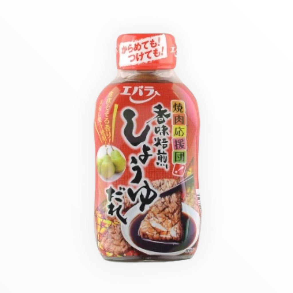 Ebara Foods Yakiniku Supporter Aromatic Roasted Soy Sauce 235g is crafted with naturally brewed soy sauce, enhanced with the sweetness of sugar and pear juice, along with the rich flavors of sesame oil, garlic, and onion. This seasoning is characterized by its appetizing and savory aroma.
