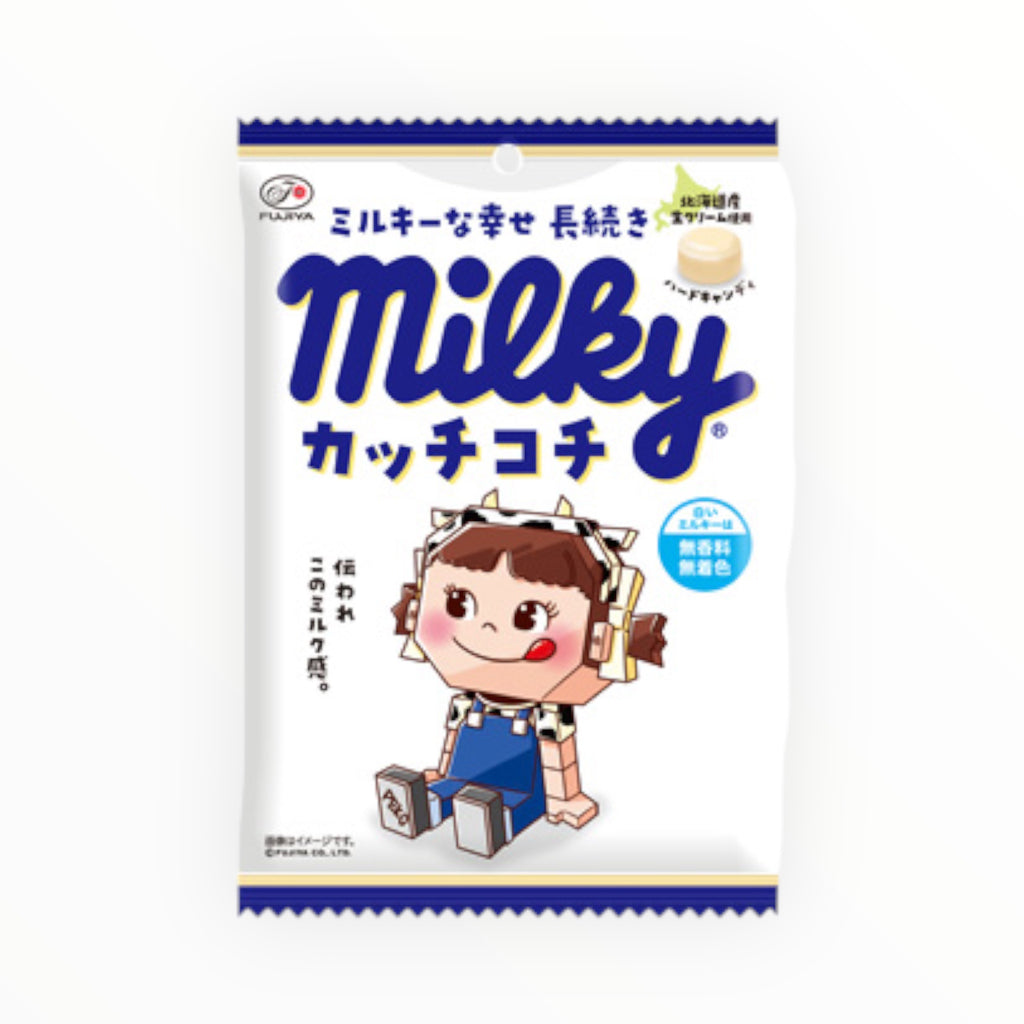 Fujiya Katchi kochi Milky is a hard milk candy that allows the sweet, creamy flavor of milk to last longer in your mouth. Free from artificial flavors and colors, this candy offers a pure and rich milk taste for lasting enjoyment.