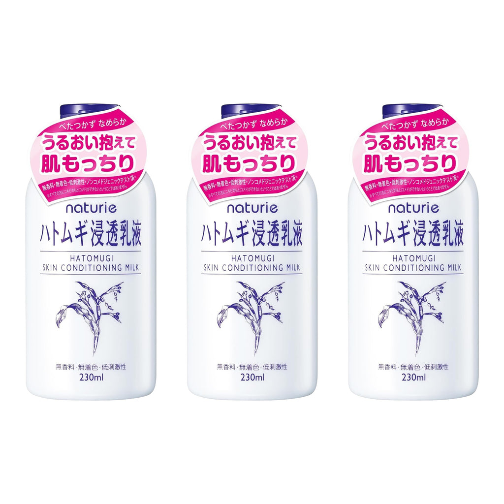 DescriptionThree bottles of nourishing emulsion infused with Hatomugi extract to soften and condition skin.