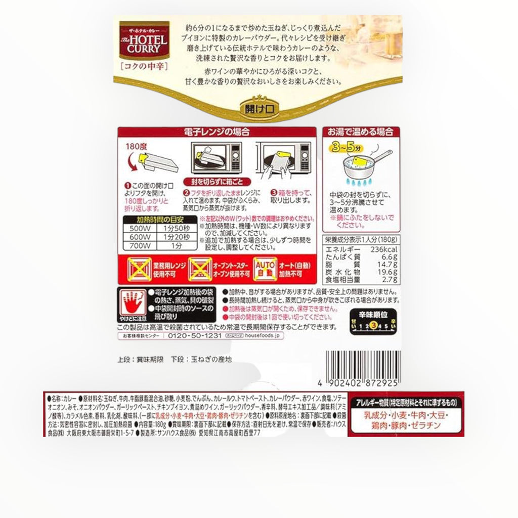Experience the refined and luxurious taste as if dining in a traditional hotel. This curry features a smooth sauce infused with the richness of approximately 1/6th sautéed onions, slow-cooked broth, and special curry powder. Enjoy the luxurious flavor with deep richness spreading like the charm of red wine and the sweet and rich aroma. It can be heated in a microwave while still in the box, not just by immersing in hot water.