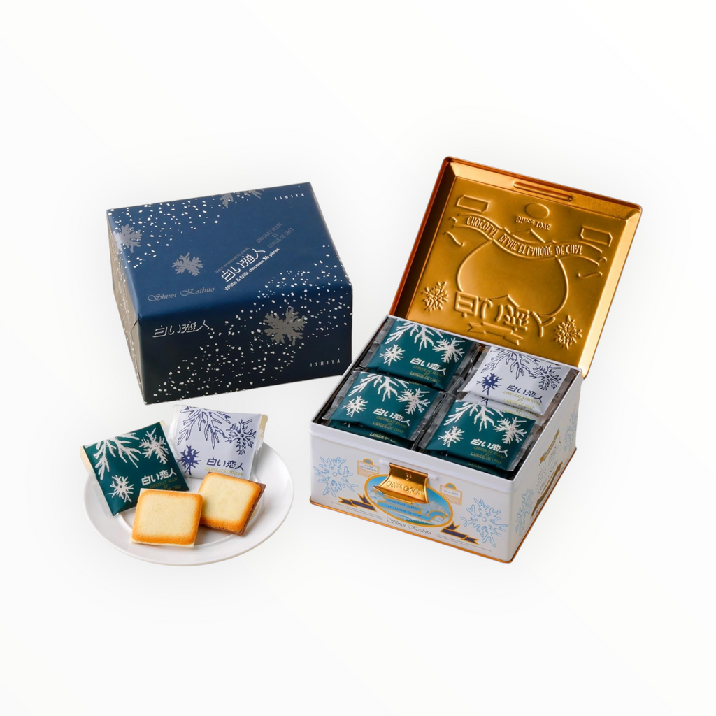 ISHIYA’s Shiroi Koibito (White & Black) is a luxurious treat that combines two delightful flavors in a beautifully designed tin. This 36-piece set includes delicate langue de chat biscuits filled with smooth white chocolate and rich dark chocolate, offering a balanced experience of sweetness and richness. Packaged in an elegant tin, this set makes for a perfect gift or indulgent treat to share on special occasions.