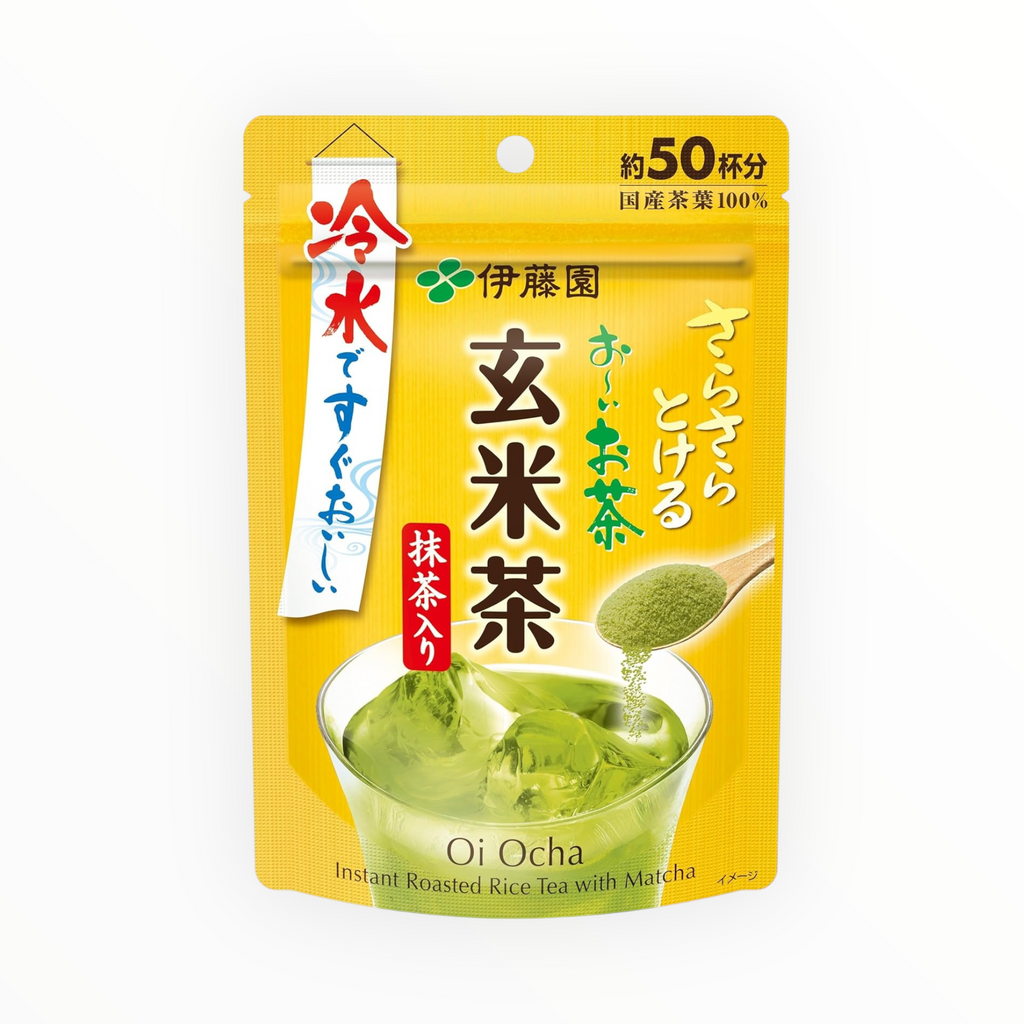 Itoen’s Oi Ocha Genmaicha Powder offers a convenient way to enjoy the rich, nutty flavor of genmaicha combined with the smoothness of matcha. This finely milled powder dissolves easily in both hot and cold water, providing an instant, authentic tea experience. Perfect for busy individuals who want to enjoy a traditional Japanese tea quickly, this powder comes in a resealable bag for easy storage and freshness.
