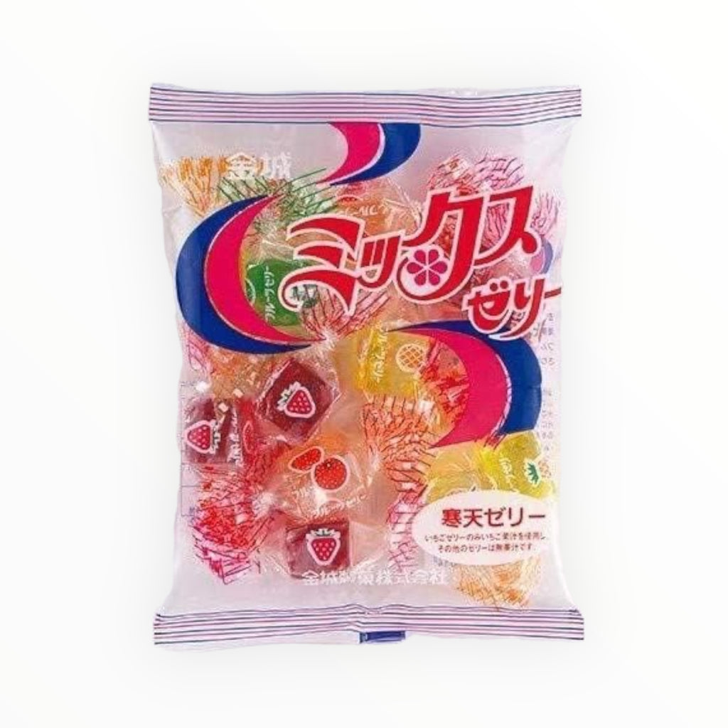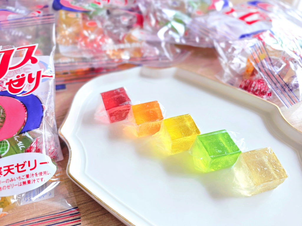 Ingredients: Glucose syrup, sugar, agar, strawberry juice, starch, flavoring, colorings (red cabbage, carotenoid, gardenia, red yeast rice), emulsifier (soybean-derived)