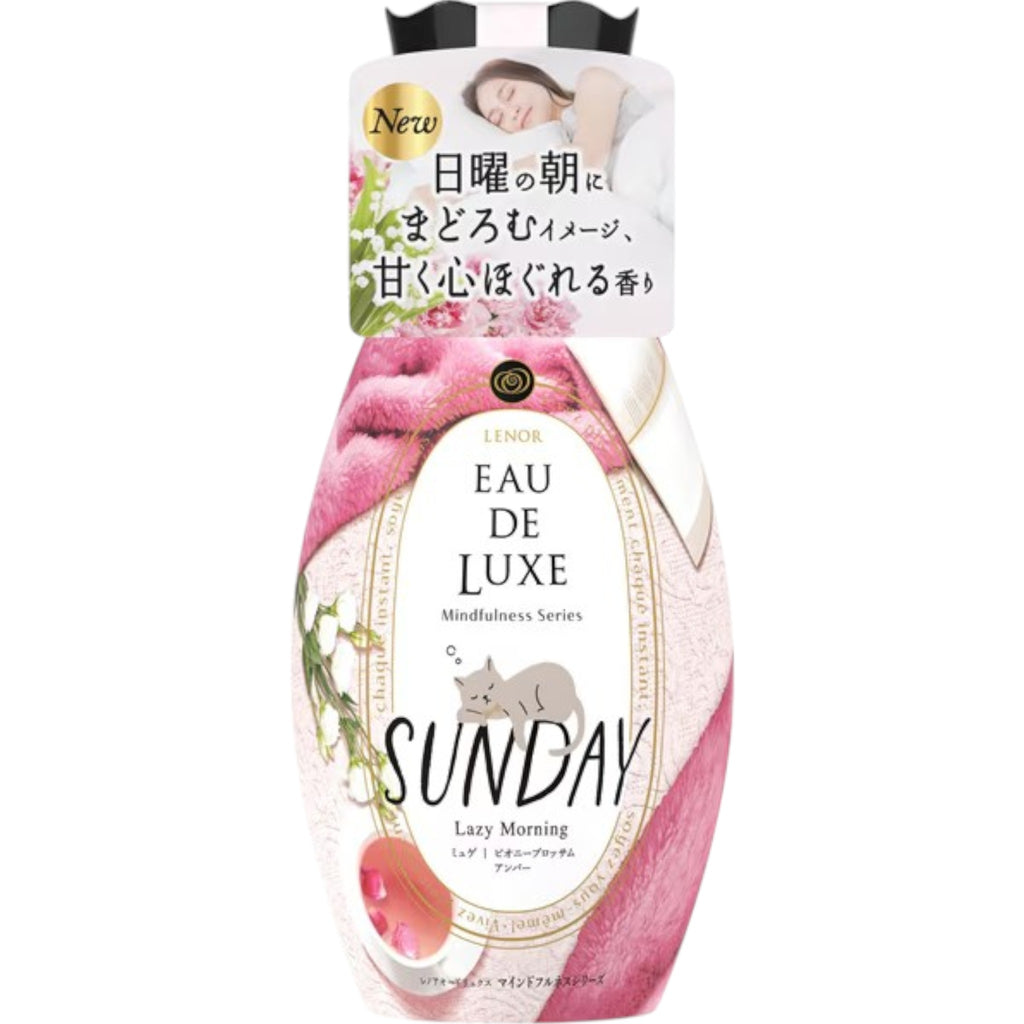 Lenor Eau de Luxe Mindfulness Series Sunday is a premium fabric softener with a sophisticated blend of lily of the valley, peony blossom, and amber. It softens fabrics while reducing static, leaving clothes with a smooth and luxurious feel. The long-lasting fragrance provides an elegant and calming atmosphere, making it a perfect addition to your laundry routine.