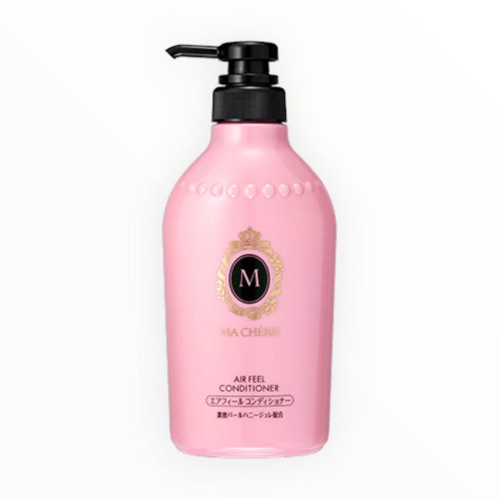 Macherie Air Feel Conditioner EX is enriched with the Rich Pearl Honey Jelly DX* blend that deeply repairs damaged hair from the inside, leaving it smooth, shiny, and lightweight. It creates silky, manageable hair while imparting a lasting Smoky Cut fragrance for a fresh and elegant scent.
