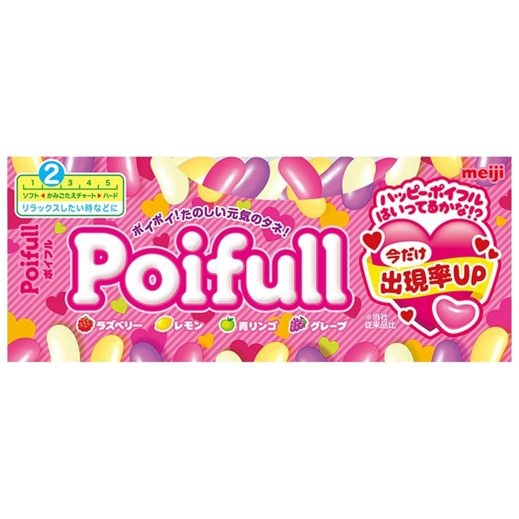 Meiji Poifull is a delightful assortment of soft and chewy jelly beans, featuring four popular fruit flavors: raspberry, lemon, green apple, and grape. Each bean offers a burst of juicy taste and a fun, bouncy texture, making them perfect for on-the-go snacking or sharing with friends.