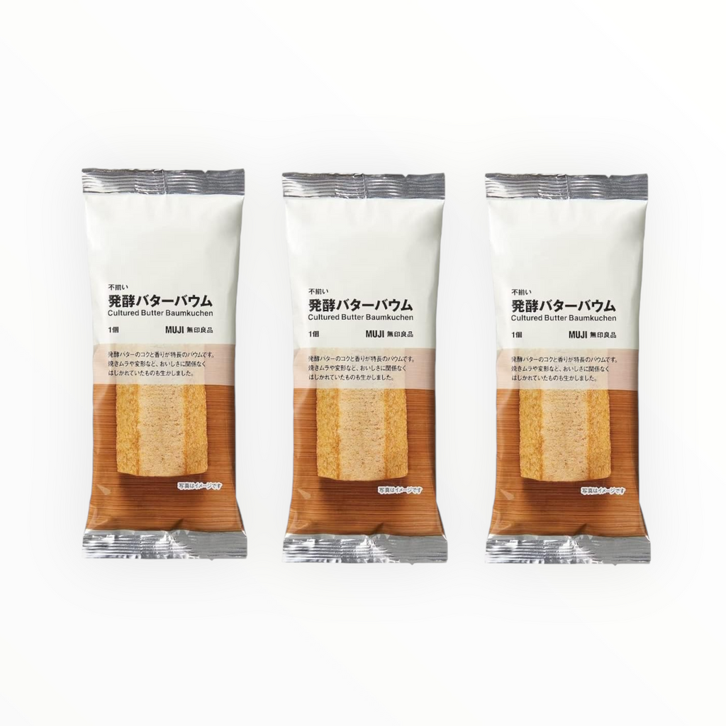 MUJI’s “Uneven Fermented Butter Baum” is a rich and flavorful baumkuchen made with fermented butter, offering a deep and savory taste. This 3-piece set features the signature layers of baumkuchen with a delicious buttery aroma. The “uneven” shape adds a rustic and homemade charm, making each piece unique and perfect for those who appreciate the richness of high-quality butter.
