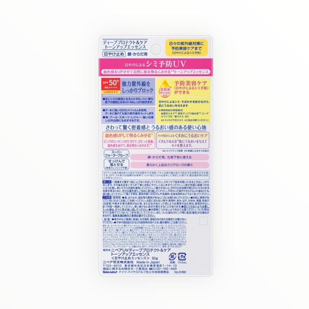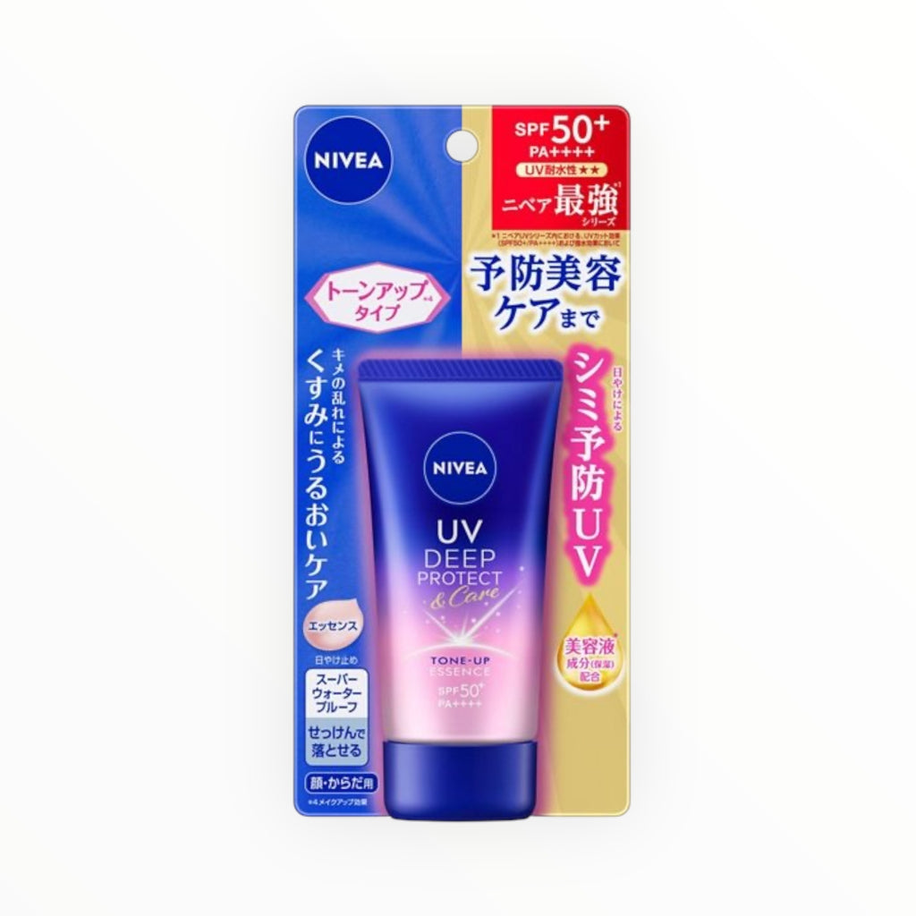 Brighten and protect your skin with NIVEA UV Deep Protect & Care Tone-Up Essence SPF50+ PA++++, a sunscreen that offers both UV defense and natural tone correction.