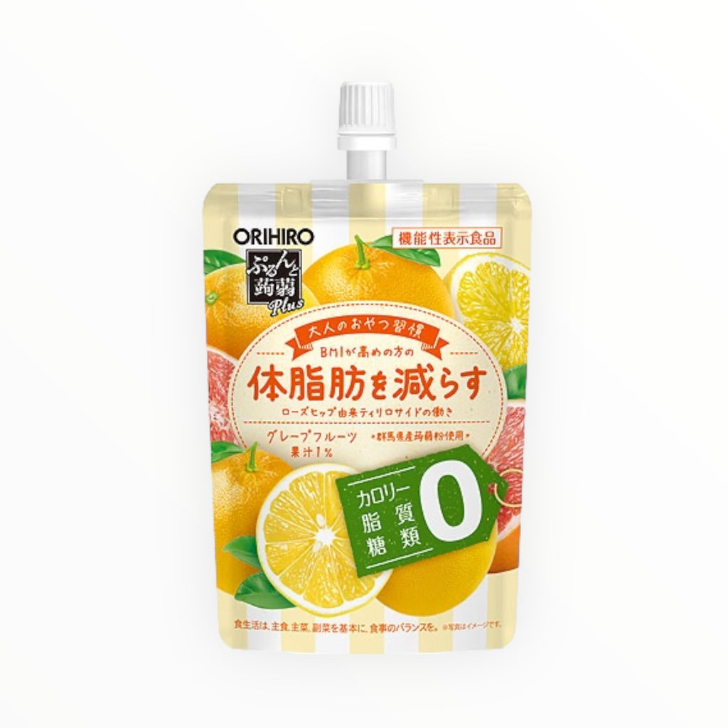 This functional konjac jelly pouch features the tangy and refreshing flavor of grapefruit, offering a delicious and convenient snack. Formulated with rosehip-derived tiliroside, it helps reduce body fat in individuals with a high BMI. This triple zero jelly is calorie-free, fat-free, and sugar-free*, making it a healthy and tasty option. The pouch design allows for safe consumption by pushing out the jelly, preventing accidental swallowing. Enjoy the invigorating taste of grapefruit along with the addictive texture of konjac jelly.