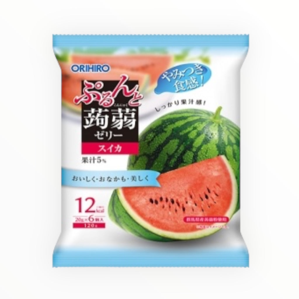 This konjac jelly pouch features the refreshing and sweet flavor of watermelon, offering a delicious and convenient snack. Made with real fruit juice, this mini-sized konjac jelly is designed to be pushed out, preventing accidental swallowing and ensuring safe consumption. It is perfect for a quick and healthy snack to curb your hunger. Enjoy the delightful sweetness of watermelon along with the addictive texture of konjac jelly.