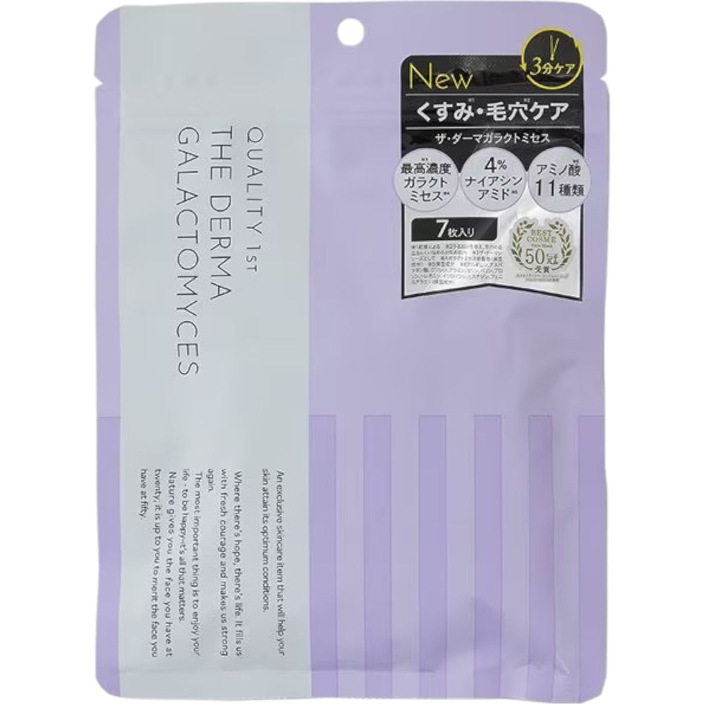 Quality First The Derma Galactomyces Face Mask is infused with galactomyces ferment filtrate to enhance skin clarity, hydration, and smoothness. Enriched with ceramides, hyaluronic acid, and natural plant extracts, this mask deeply nourishes the skin while improving texture and radiance. Each pack contains 7 sheets, ideal for revitalizing your skincare routine.