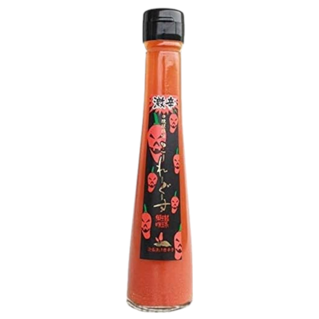 An intensely spicy Okinawan chili sauce made by soaking fiery island-grown togarashi peppers in awamori liquor. This extra hot version from Shinjou brings bold, clean heat to Okinawa soba, champuru, stir-fries, and grilled dishes.