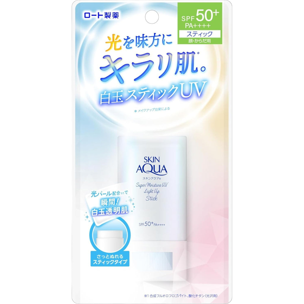 Achieve radiant, protected skin with the Skin Aqua Super Moisture UV Light Up Stick. Formulated with Vitamin C derivatives and luminous light pearls, this sunscreen stick provides high SPF50+ PA++++ protection against harmful UV rays. Its lightweight formula doubles as a makeup base, offering a tone-up effect for a brighter complexion. Perfect for daily use, it glides smoothly and leaves your skin hydrated and luminous.
