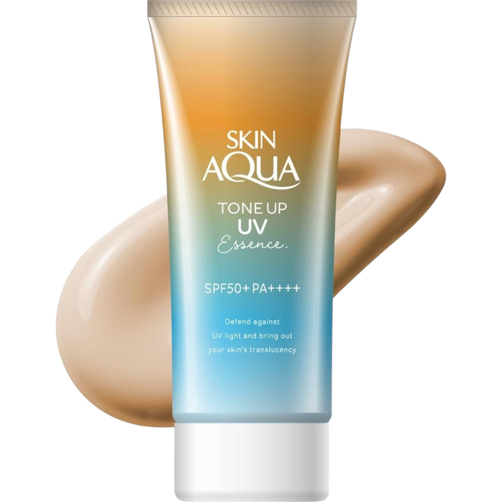 Skin Aqua Tone Up UV Essence Latte Beige (80g) combines high SPF50+ PA++++ sun protection with a makeup primer for a flawless, even-toned complexion. The Latte Beige shade naturally enhances skin tone, while its lightweight, moisturizing essence glides smoothly without feeling greasy. Ideal for all skin types, it offers a non-waterproof finish and a subtle soap fragrance for a fresh, pleasant experience.