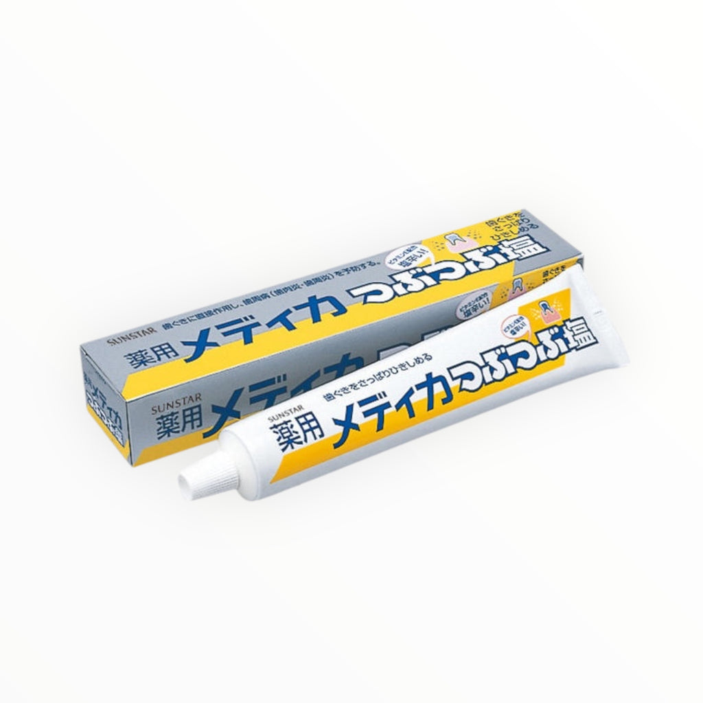 Sunstar's Medica Tsubutsubu Salt is designed to improve gum health by tightening the gums and preventing common gum diseases like gingivitis and periodontitis. The unique formula includes crystal salt to stimulate gum circulation and Vitamin E, which promotes healthy blood flow. With its spicy mint flavor, this toothpaste keeps your breath fresh while protecting your gums.