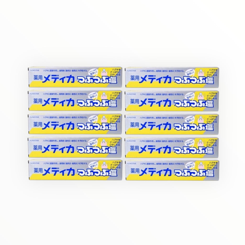Sunstar's Medica Tsubutsubu Salt is designed to improve gum health by tightening the gums and preventing common gum diseases like gingivitis and periodontitis. The unique formula includes crystal salt to stimulate gum circulation and Vitamin E, which promotes healthy blood flow. With its spicy mint flavor, this toothpaste keeps your breath fresh while protecting your gums.