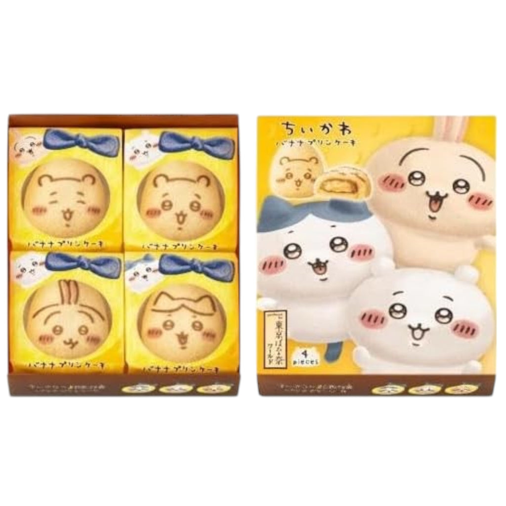 A limited-edition Tokyo Banana cake featuring the beloved Chiikawa characters and a soft sponge filled with banana pudding-style custard.