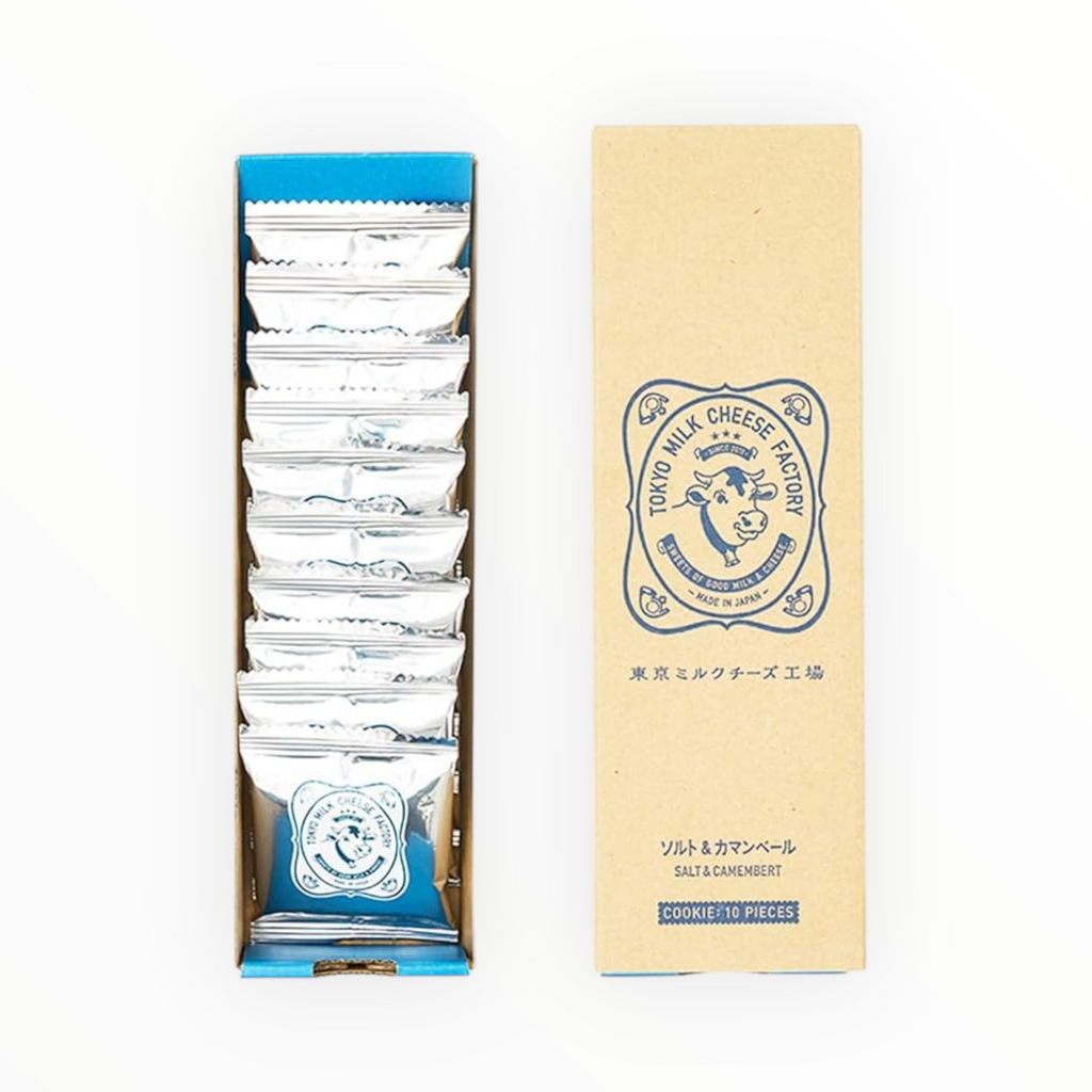 Tokyo Milk Cheese Factory’s Salt & Camembert Cookies are a unique blend of savory and sweet flavors. These crisp, buttery cookies are sandwiched with a creamy Camembert cheese filling, enhanced with a touch of sea salt. The combination of rich cheese and a hint of salt creates a refined, indulgent taste experience. This 10-piece box is perfect for gifting or enjoying as a luxurious snack.