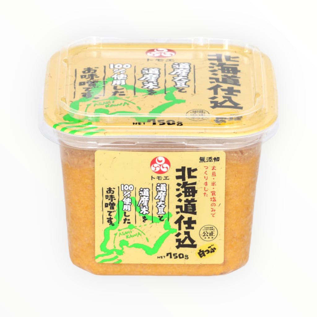 Tomoechan Hokkaido Shikomi White Tsubu Miso is made from 100% Hokkaido-grown soybeans and rice, delivering a light and mildly sweet flavor. This miso is perfect for creating authentic Japanese soups and dishes with a delicate taste that highlights the natural richness of its high-quality ingredients. The miso is carefully produced using non-GMO soybeans, ensuring quality and safety.
